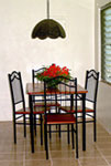 Adagio Suite: This lower apartment has a patio tiled main gallery off the livingroom with decorative grillwork, facing toward the Frederiksted pier and harbor through bamboo and tropical privacy plantings. The kitchen was recently renovated, with bar counter space, neutral tone decorative tile and wood cabinetry (photos available soon). The apartment has two tiled bathrooms with showers, one with the master bedroom suite and one off the secluded hallway. Ceiling fans throughout and marblized tile floors.